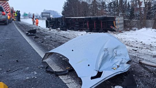 W wyniku zderzenia, tir wjechał do rowu. Będzie stamtąd usuwany za pomocą specjalistycznego sprzętu, co może powodować chwilowe utrudnienia w ruchu na krajowej siódemce. Na drogach nadal bardzo ślisko, uważajcie na siebie.