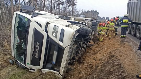 Jak informuje asp. szt. Anna Pawłowska z mławskiej policji, ciężarowy MAN z naczepą wypadł z drogi do rowu. W momencie usuwania TIRa z rowu, droga może zostać całkowicie zablokowana. Uważajcie na tym odcinku.