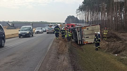 Glinojeck. Tir w rowie, utrudnienia na siódemce