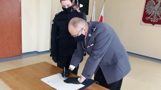 Posterunkową Martę Pawlak przywitał w naszych szeregach Komendant Powiatowy Policji w Płońsku isnp. Jarosław Brzozowski.