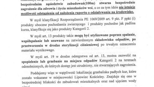 -My jako gmina wolna od tych instalacji mamy brać odpowiedzialność za pewne rzeczy, które dzieją się gdzieś dalej? Przede wszystkim odpowiedzialność powinna być wśród właścicieli, bo mimo że w każdych warunkach udzielania pozwolenia na budowę i środowiskowych uwarunkowaniach prowadzący taką działalność, taką hodowlę wielkopowierzchniową, mają obowiązek zapewnić utylizację dla swojego inwentarza, ale jak widać realia są inne, niż obiecywane na piśmie- dodaje wójt.