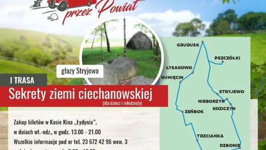 Powiat w ramach projektu „Z historią przez Powiat” przygotował trzy historyczne trasy: „Sekrety ziemi ciechanowskiej”, „Na szlacheckim szlaku” i „Nad wodami Sony”, na których będzie można poznać historię lokalną, odwiedzić nieznane lub mało znane miejsca na terenie naszego powiatu. W wycieczkach będą uczestniczyć przewodnicy, którzy poprowadzą lekcje historii w plenerze. Trasy są przemierzane angielskim, piętrowym autobusem.
