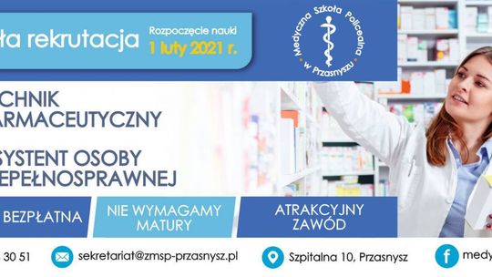 A w przasnyskim „Medyku” rok szkolny 2021/22 zapowiada się ciekawie, nie tylko dlatego, że świetna kadra tej szkoły już nie może doczekać się nowych słuchaczy. Dlatego, że przyszli słuchacze już nie mogą doczekać się nowych kierunków, które szkoła przygotowała - a szykuje się spora niespodzianka.