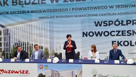 Wczoraj władze samorządu Mazowsza oraz Powiatu Ciechanowskiego podpisały z wykonawcą, czyli firmą Budimex umowę na realizację projektu pod nazwą „Budowa Centrum Administracyjnego w Ciechanowie na potrzeby jednostek administracyjnych Województwa Mazowieckiego oraz Powiatu Ciechanowskiego”. Inwestycja będzie kosztowała ponad 53 mln zł. - To nie jest dużo wbrew pozorom. Inwestycja jest uszyta na miarę, kilka instytucji szczebla wojewódzkiego i instytucje powiatu ciechanowskiego będą w jednym miejscu. Co to oznacza dla mieszkańca? To przede wszystkim ogromna oszczędność czasu, a dla urzędów to lepsza współpraca, ze względu na jedną lokalizację i szybszy przepływ informacji- powiedziała w rozmowie z nami starosta Joanna Potocka-Rak.
