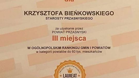 - Nagroda jest moim zdaniem docenieniem starań całej drużyny Powiatu Przasnyskiego. Wszyscy na nią pracowali, zarówno Zarząd Powiatu, Rada Powiatu, Starostwo jak i jednostki organizacyjne Powiatu. Dziękuję wszystkim za ciężką pracę i starania, by inwestować i poprawiać obsługę dla naszych mieszkańców, bo to właśnie przyniosło nam sukces - czytamy we wpisie starosty Bieńkowskiego na Facebooku.