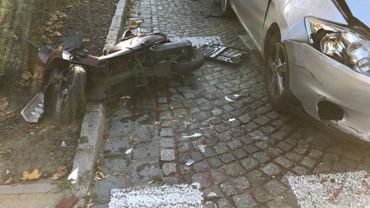 Według wstępnych ustaleń policjantów kierowcy pojazdów skoda fabia i motoroweru zatrzymali się przed przejściem dla pieszych, natomiast 44-letnia kierująca samochodem Toyota będąc po użyciu alkoholu uderzyła w tył motorowerzysty, a ten w tył samochodu Skoda Fabia, który uderzył w pieszego - informuje kom. Jolanta Bym.