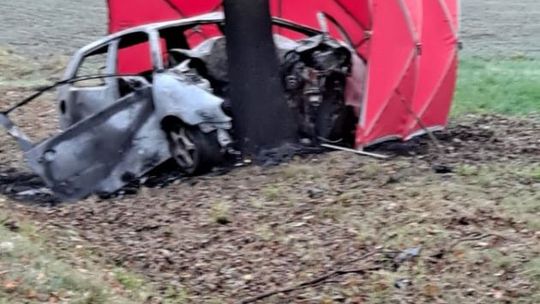 - We wtorek o godzinie 6.30 dostaliśmy zgłoszenie o wypadku samochodu osobowego, który uderzył w drzewo. Na miejsce zadysponowano jednostki Ochotniczej Straży Pożarnej i zastępy Państwowej Straży Pożarnej. Po dojeździe okazało się, że samochód był całkowicie objęty płomieniami. Z relacji świadka wynikało, że w środku znajduje się jedna osoba, której nie udało się ewakuować przed pożarem. Niestety nie znamy przyczyn wypadku, być może to warunki atmosferyczne wpłynęły na to zdarzenie - powiedział w rozmowie z naszym portalem mł. bryg Łukasz Kochanowski, zastępca komendanta Państwowej Straży Pożarnej w Nowym Dworze Mazowieckim.
