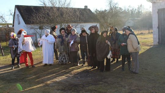 "W dniu dzisiejszym podczas rozmowy podsumowującej usłyszałam, iż Pan Wójt ma nadzieję, że nasz Korowód stanie się nową tradycją w gminie. Na czele pochodu stał miś, za nim bocian, anioł i śmierć oraz cała gama postaci zwierzęcych, bajkowych i innych. Całości dopełnił muzykant wygrywający skoczne melodie. Korowód przeszedł ulicami Krasnego śpiewając i wzbudzając duże zainteresowanie mieszkańców, którzy z okien nagrywali nas swoimi telefonami. Były także domy i rodziny, które otworzyły dla nas swoje drzwi i przyjęli nas z wielką radością i gościnnością. Przebierańcy życzyli domownikom zdrowia i wszelkiej pomyślności oraz pokoju, zwłaszcza w obecnej trudnej sytuacji. Odwiedziliśmy także komisariat policji oraz Ks. Krzysztofa Kujawę Proboszcza Parafii w Krasnem, którzy również z radością nas przyjęli."