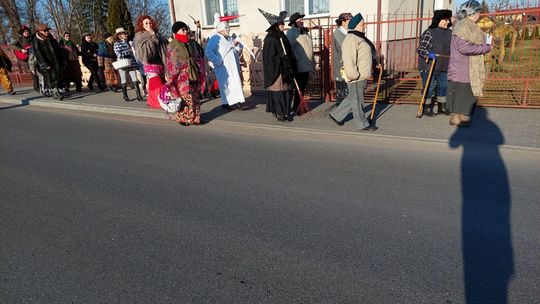 Tak też było i w kraśnieńskim pochodzie. Korowód przebierańców miał za zadanie przypomnieć mieszkańcom Krasnego tę piękną polską tradycję. Ruszył o godzinie 15 spod siedziby biblioteki. Pierwszym punktem, do którego barwny i rozśpiewany korowód podążył była Gmina i włodarz gminy, czyli wójt Michał Szczepański. Przebierańcy z uśmiechem i nieukrywaną radością zostali przez Wójta przywitani, ale widać było też jego wielkie zaskoczenie.