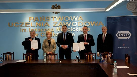 Organizacja praktyk studenckich oraz wykorzystanie kadry naukowej i bazy uczelni do badań potrzebnych do rozwoju PKP to najważniejsze elementy umowy o współpracy podpisanej dziś w Ciechanowie pomiędzy PKP S.A., a Państwową Uczelnią Zawodową im. Ignacego Mościckiego.