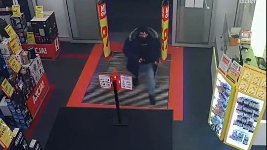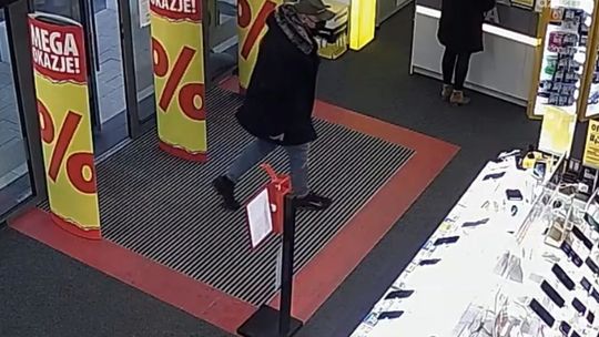 Kamery monitoringu zarejestrowały mężczyznę w kurtce zimowej z kapturem zakończonym szarym futrem. Na głowie czapka z daszkiem. Charakterystycznie poruszający się mężczyzna ukradł trzy zestawy myszy komputerowych. Na kolejnym nagraniu widać prawdopodobnie tego samego sprawcę. Tym razem ma na głowie czarną czapkę z napisem „NY". Działa wspólnie z trzema innymi osobami. Kamery zarejestrowały podejrzaną kobietę z dużą granatową torbą, mężczyznę w zielonej kurtce i mężczyznę z dużym, ciemnym plecakiem, na głowie czapka szaro - czarna wzór moro.