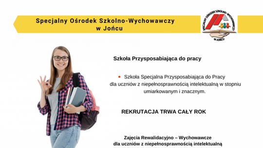 Szkoła Specjalna Przysposabiająca do Pracy dla uczniów z niepełnosprawnością intelektualną w stopniu umiarkowanym i znacznym.