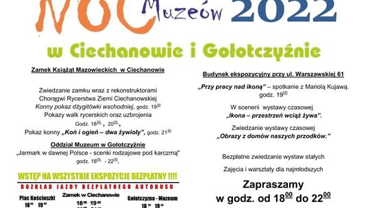 Tradycyjnie w ramach wydarzenia będzie można zwiedzić wszystkie wystawy stałe i czasowe, a dodatkowo wziąć udział w wydarzeniach przygotowanych specjalnie na tę okazję. Szczegółowy program wydarzenia z podziałem na poszczególne jednostki Muzeum Szlachty Mazowieckiej w Ciechanowie publikujemy poniżej.
