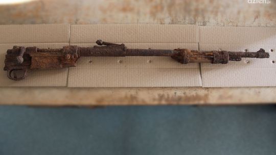 Znalezisko zostało zabezpieczone przez mławskich policjantów 9 maja. Elementy broni, prawdopodobnie karabinu z czasów I wojny światowej, zostały przekazane do muzeum. Okazuje się, że ziemia nadal skrywa jeszcze broń i amunicję z czasów wojennych. Jeśli odkryjemy takie znalezisko należy niezwłocznie powiadomić policję.