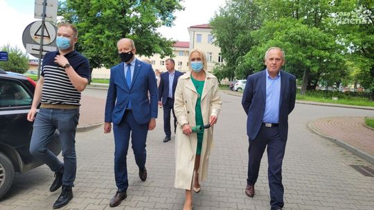 Następnie Wojewoda udał się do Samodzielnego Publicznego Zespołu Zakładów Opieki Zdrowotnej. Szpital dzięki wsparciu w wysokości 686 tys. zł, ze środków z Funduszu Przeciwdziałania COVID-19, zakupił nosze bariatryczne, aparaty do wysokoprzepływowej terapii tlenowej, wannę z podnośnikiem kąpielowo- transportowym, lampy bakteriobójcze, wózki anestezjologiczne oraz chłodnię na ciała lub komorę chłodniczą wraz z wózkiem hydraulicznym.