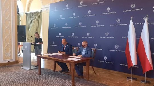 28 czerwca w siedzibie Mazowieckiego Urzędu Wojewódzkiego w Warszawie Starosta Przasnyski Krzysztof Bieńkowski, Etatowy Członek Zarządu Powiatu Przasnyskiego Paweł Mostowy i Skarbnik Powiatu Beata Czaplicka podpisali dwie umowy z Wojewodą Mazowieckim Konstantym Radziwiłłem na dofinansowanie przebudowy dróg powiatowych na łączną kwotę ponad 1,7 mln zł.