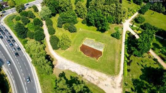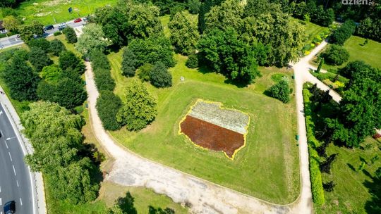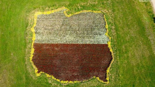 Park Marii Konopnickiej w Ciechanowie zdobią begonie nasadzone w kwiecisty kontur mapy Polski. Biało-czerwona kompozycja rozkwitła w Ciechanowie kolejny raz.