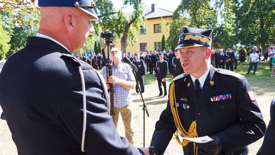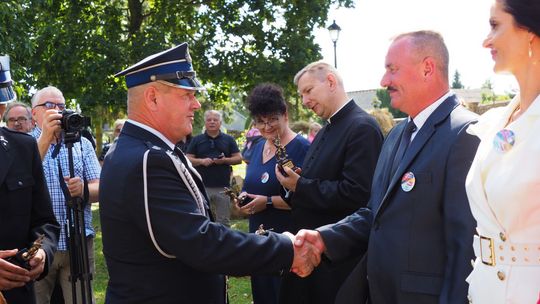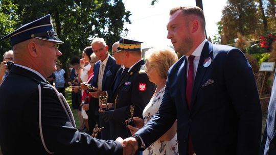 Nadbryg. Jarosław Nowosielski, Mazowiecki Komendant Wojewódzki PSP na ręce druha Romana Podlińskiego wręczył jednostce OSP Dąbrowa honorowe wyróżnienie na okoliczność 100 - lecia istnienia.