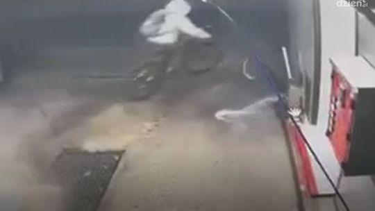 Z monitoringu wynika, że sprawca, w towarzystwie innych osób, przyjechał na teren myjni rowerem.
