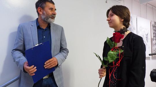 Janusz Dębski wprowadził wszystkich w twórczość Andżeliki Kępy i przybliżył jej postać. Następnie studentka I roku grafiki na Akademii Sztuk Pięknych w Gdańsku, ze szczegółami opowiedział o sobie, swoich pracach i zamiłowaniu do sztuki.