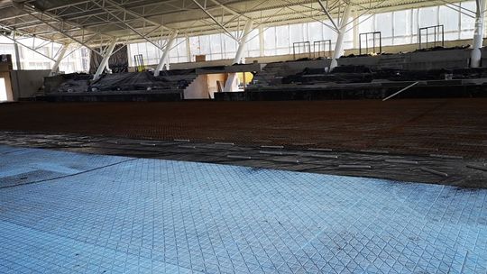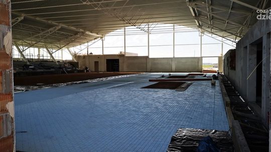Powstaje też najważniejszy element budynku - główna płyta lodowiska. Położono już warstwy izolacji przeciwwodnej, termicznej oraz konstrukcję samej płyty łącznie z instalacjami chłodniczymi. Wykonywana jest wentylacja, instalacja sanitarna i elektryczna.Projektowana hala sportowa mieścić będzie płytę sztucznego lodowiska o wymiarach 40x25m ograniczoną systemowymi bandami.