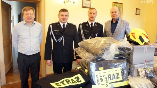 W piątek 30 września burmistrz Sławomir Kowalewski oficjalnie przekazał druhom – z prezesem Tomaszem Maciejewskim na czele – sprzęt, w którym znalazły się ubrania specjalne FHR 008, kominiarki, hełmy z latarkami, buty specjalne, rękawice specjalne i ubrania koszarowe. Tego samego dnia zakupione wcześniej dla jednostki z siedzibą przy ul. Piekiełko trzy ubrania koszarowe odebrał jej prezes Kazimierz Smoliński.