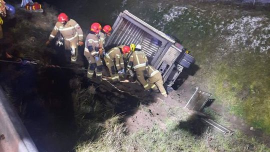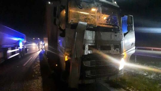 Jak informuje asp. szt. Anna Pawłowska: - Kierujący ciężarowym volvo z naczepą, 60-letni mieszkaniec pow. warszawskiego zachodniego, jadąc w kierunku Warszawy, uderzył w naczepę jadącego przed nim mana. W wyniku uderzenia, kierujący manem, 60-letni mieszkaniec pow. łowickiego, stracił panowanie nad pojazdem, zjechał na pobocze, przebił bariery ochronne i wpadł do rowu. Ranny kierowca został przewieziony do szpitala w Mławie. W naczepie mana przewożone były zwierzęta hodowlane. Cześć bydła padła.