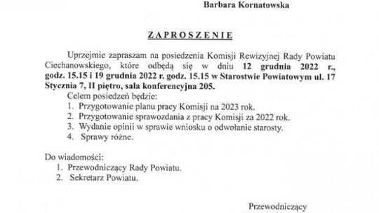 - Wniosek będziemy procedować na naszej komisji 19 grudnia o godzinie 15:15 - odpowiedział przewodniczący Komisji Rewizyjnej Powiatu Ciechanowskiego Łukasz Lewandowski.