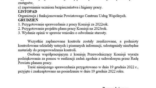 Tym samym nie podjęto rozmowy na ważny nie tylko dla zainteresowanych osób, ale i dla powiatu tematu. Okazało się przy okazji, że przeprowadzone kontrole w jednostkach organizacyjnych powiatu w 2022 r. nie wykazywały żadnych nieprawidłowości. Nie było też uwag do prac wydziałów Starostwa Powiatowego w Ciechanowie.