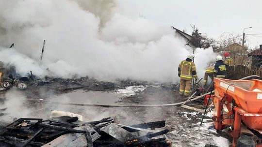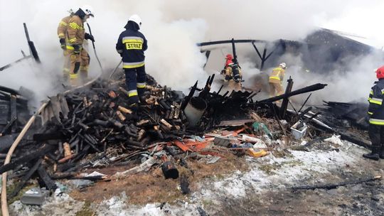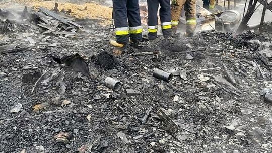 - Przystąpili do prac rozbiórkowych elementów konstrukcji budynku, który częściowo się zawalił oraz ewakuacji spalonych maszyn i sprzętów. Przerzucono i przelano drewno oraz zboże znajdujące się wewnątrz obiektu. Powyższe czynności pozwoliły ugasić pożar. Przy pomocy kamery termowizyjnej sprawdzono pokrycie dachu obory czy pożar nie wdarł się pod pokrycie dachowe. Zagrożeń nie stwierdzono - dodał kpt. Kuligowski.