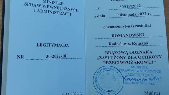 - Podczas uroczystego apelu zostali odznaczeni Brązową Odznaką "Zasłużony dla Ochrony Przeciwpożarowej" insp. Zbigniew Andres Komendant Powiatowy Policji w Ciechanowie oraz mł. insp. Radosław Romanowski I Zastępca Komendanta Powiatowego Policji w Ciechanowie - informuje mł. asp. Magda Zarembska.