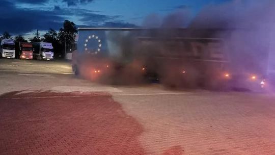 Pościg za palącą się ciężarówką pod Płońskiem (zdjęcia)