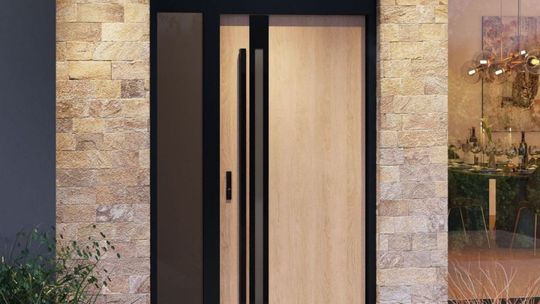 Drzwi zewnętrzne z blachy stalowej, zabezpieczone okleiną PVC. To produkt specjalnie opracowany do zastosowania na zewnątrz. Okleina PVC odznacza się wysoką odpornością na zmienne warunki atmosferyczne, promieniowanie UV i uszkodzenia mechaniczne. Faktura dostosowana do dekoracyjnego motywu tworzy produkt o wysokich walorach estetycznych.