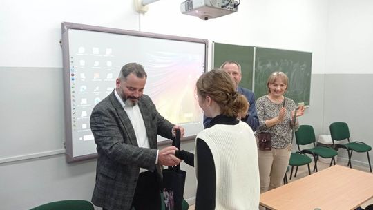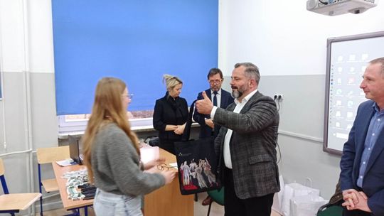 Nikt nie został bez upominku. Nagrody wręczał poseł Arkadiusz Iwaniak wraz z asystentem społecznym Sebastianem Andrzejczakiem i dyrektorem SP3 w Ciechanowie Andrzejem Niestępskim.