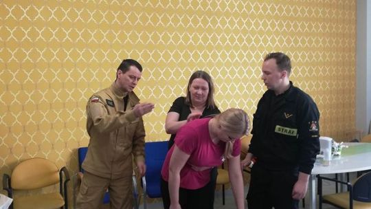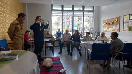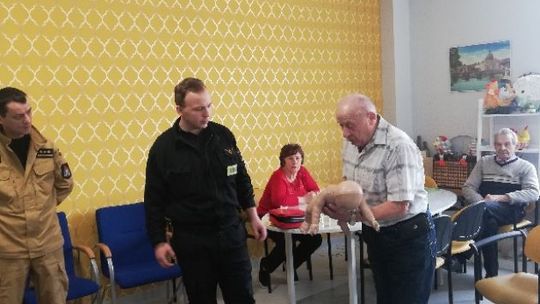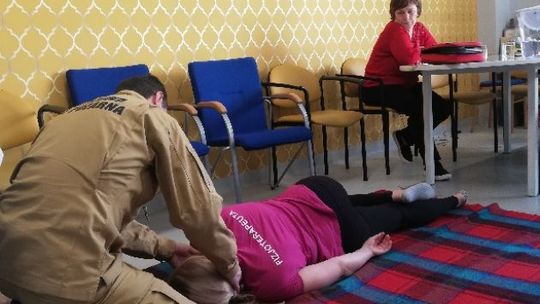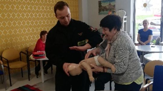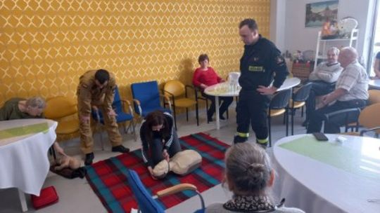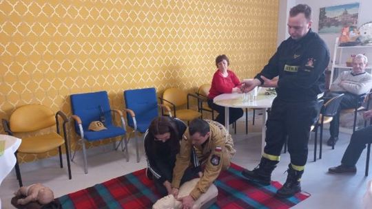 Podczas spotkania strażacy jasno i szczegółowo zaprezentowali seniorom m. in. jak ocenić stan osoby poszkodowanej jeżeli zajdzie potrzeba prowadzić resuscytację krążeniowo-oddechową.