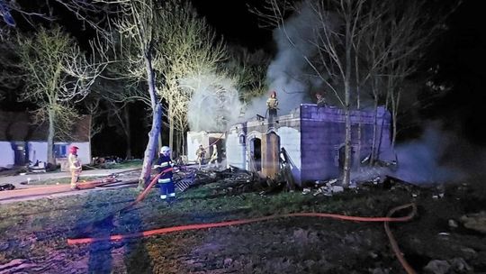Dzisiaj w nocy, tj. z 12 na 13 kwietnia palił się budynek gospodarczy w miejscowości Milewo-Rączki gm. Krasne. Gdy straż pożarna przybyła na ratunek cały dach murowanej obory - stodoły krytej eternitem był już objęty przez ogień, a około 70% budynku płonęło.