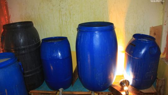 Jak informuje komisarz Kinga Drężek-Zmysłowska: - W czasie przeszukania, w budynku mieszkalnym należącym do 64-latka funkcjonariusze znaleźli 6 plastikowych beczek z zacierem, a w przydomowej bimbrowni znajdującej się w budynku gospodarczym, aparaturę gotową do wytwarzania alkoholu i butelki z gotowym wyrobem. W jednej z "kolumn" odbywał się jeszcze proces destylacji. Policjanci zabezpieczyli w sumie 450 litrów zacieru i 30 litrów bimbru. Próbki alkoholu zostaną wysłane do badań laboratoryjnych.