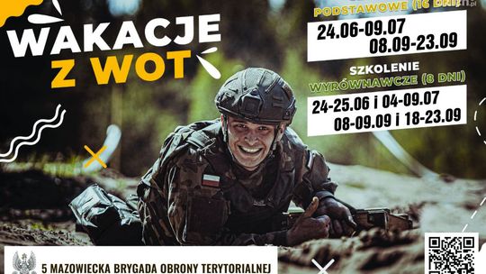 Tuż po rozdaniu świadectw szkolnych, czyli 24 czerwca rozpocznie się wakacyjne szkolenie podstawowe, na które mogą zgłosić się mieszkańcy z Północnego Mazowsza. Szkolenie potrwa do 9 lipca i zakończy uroczystą przysięgą wojskową. Drugi termin szkolenia w ramach projektu „Wakacje z WOT” został zaplanowany głównie z myślą o studentach, którzy jeszcze nie rozpoczną roku akademickiego – prowadzone będzie w terminie od 8 do 23 września.
