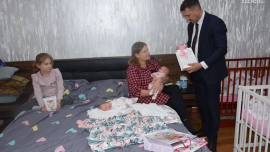 - Wielkie zaszczytem było je przywitać na naszej ziemi karniewskiej. Kilka tygodni spędziły w szpitalu zanim wróciły do domu rodzinnego wraz z rodzicami. Wspaniali rodzice, wspaniali dziadkowie, myślę że wspaniałe dziewczynki wyrosną z tych trzech pięknych młodych osób. Jak obliczyliśmy, statystycznie taka historia w gminie naszej wielkości wydarza się raz na 130 lat, więc cieszę się, że dożyliśmy tego momentu - powiedział wójt Michał Jasiński, który w imieniu samorządu przekazał upominki i życzenia z okazji narodzin dzieci.