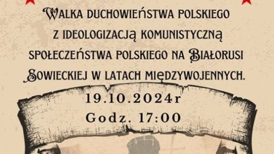 Muzeum Historyczne zaprasza na prelekcję dr. Andrzeja Białego pt. „Walka duchowieństwa polskiego z ideologizacją komunistyczną społeczeństwa polskiego na Białorusi sowieckiej w latach międzywojennych”. Start godz. 17:00.