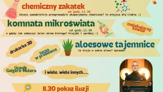 Gminna Biblioteka Publiczna zaprasza wszystkie dzieci na Jesienny Piknik Naukowy. Na uczestników czeka mnóstwo atrakcji, takich jak: chemiczny zakątek, komnata mikroświata, aloesowe tajemnice, tęcza w probówce, magiczne stoisko, drukarka 3D i wiele innych. Wydarzenie odbędzie się w budynku GBP, w godz. 10:00 – 16:00.