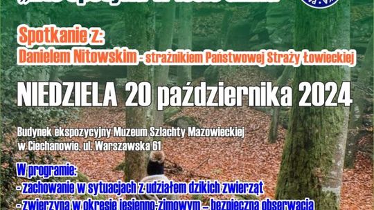 „Kto spotyka w lesie dzika…” – Muzeum Szlachty Mazowieckiej zaprasza na Rodzinną Niedzielę w Muzeum. Spotkanie dla rodzin z dziećmi odbędzie się w godzinach 11:00 i 13:00. Zajęcia poprowadzi p. Daniel Nitowski -strażnik Państwowej Straży Łowieckiej.
